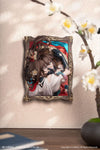 The product showcases a three-dimensional perspective with multi-layer relief technique, transforming Ruan Mei's light cone artwork into a unique decorative piece. It can be placed on a desktop with a stand or disassembled for hanging. With multiple display options, it brings your admiration for her into everyday life.